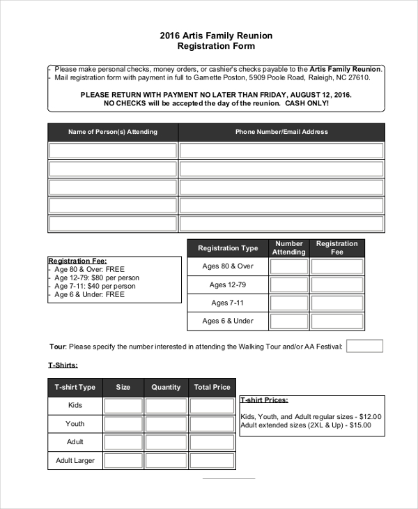 Family Reunion Itinerary Template : FREE 10+ Sample Family Reunion Registration Forms in PDF | MS Word | Excel / Organize family reunion volunteer duties with a sign up.